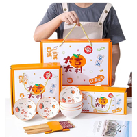 NEWELL Blue White Porcelain Ceramic Food Grade 4-Piece Tableware Bowl Chopsticks Gift Set Creative Opening Activity for Business